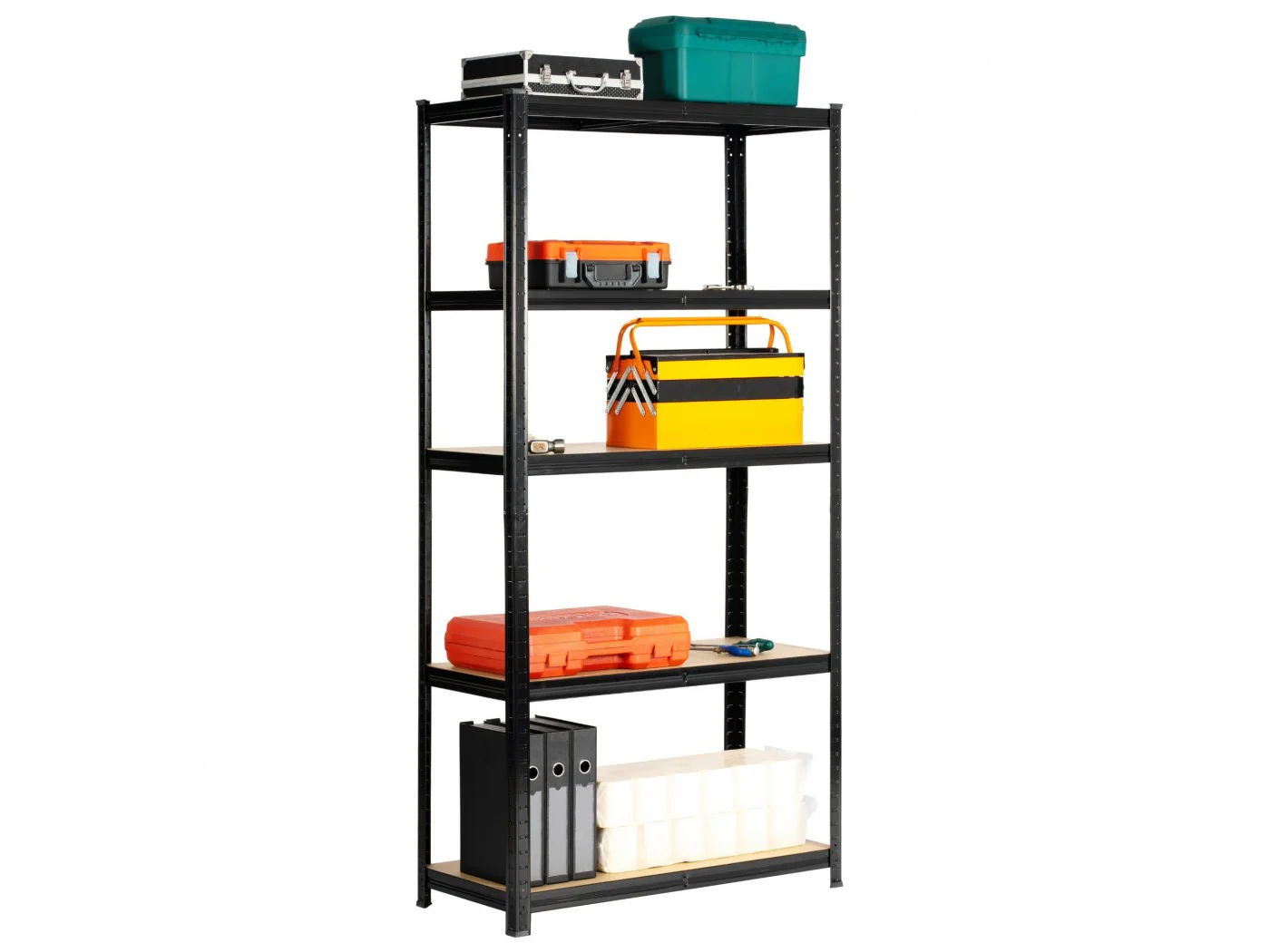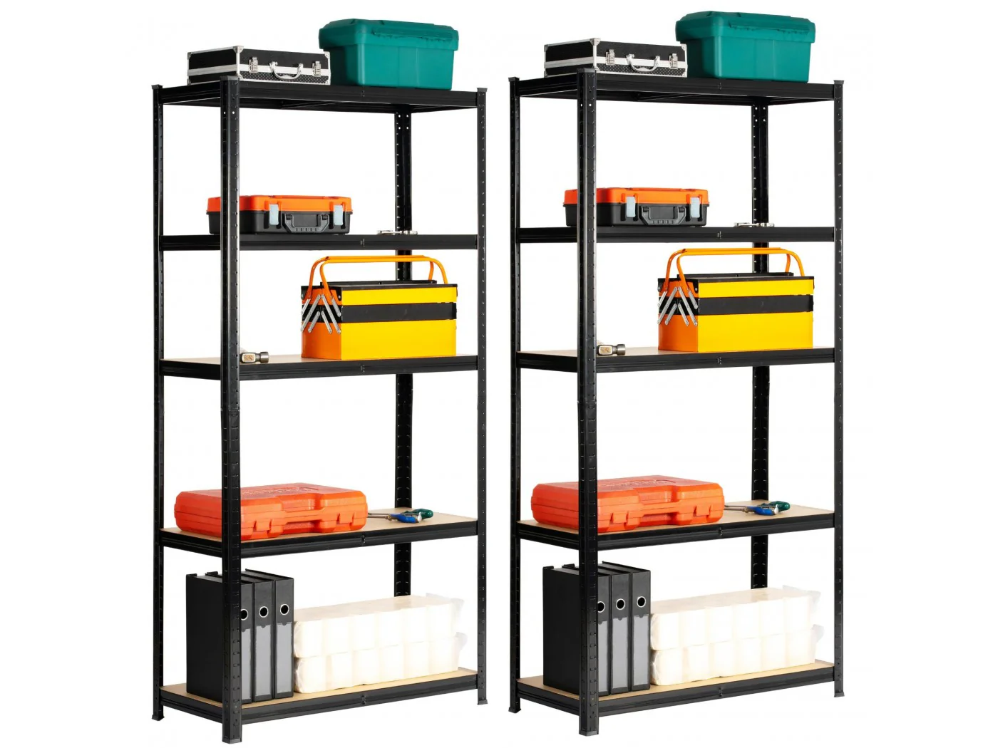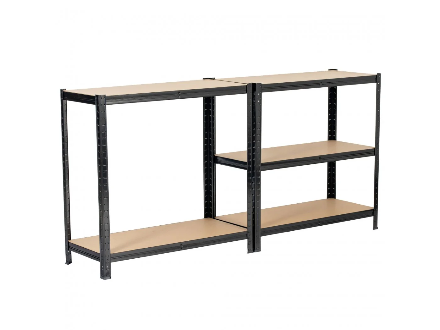 Zestaw regałów metalowy idealnie pasujący do przechowywania. Nadaje się do garażu, warsztatu, komórki lokatorskiej, jak również do pomieszczeń gospodarczych. Regał w kolorze czarnym o szerokości 80 cm oraz 180 wysokości. Pólki wykonane z wytrzymałej płyty MDF. Nośność na półkę wynosi 175kg.