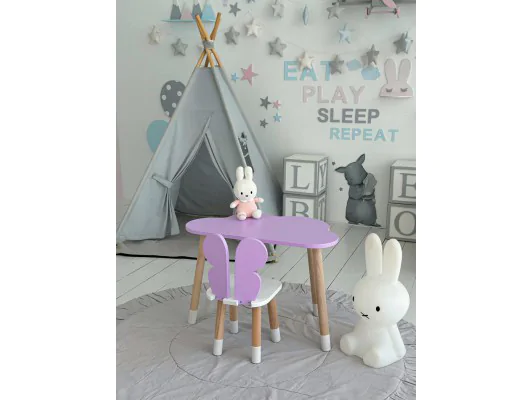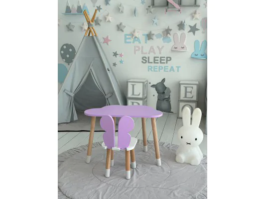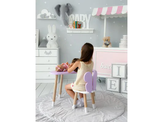 Biało fioletowy zestaw Motylek ze stoliczkiem chmurką i krzesełkiem
