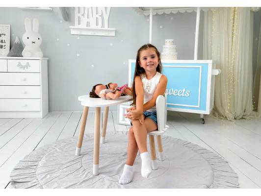 Dzięki gładkim powierzchniom, stoliczek i krzesełko są łatwe do utrzymania w czystości – wystarczy przetrzeć je wilgotną ściereczką, aby zachować świeżość.