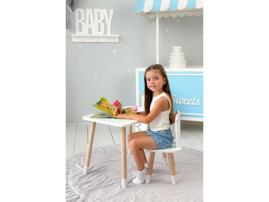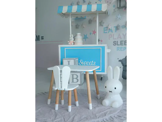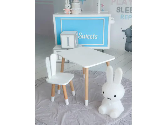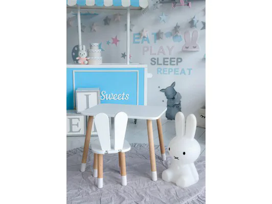 Biały stolik Króliś II dziecięcy z krzesełkiem z uszami zajączka