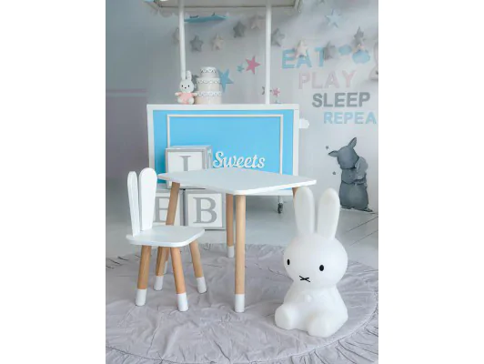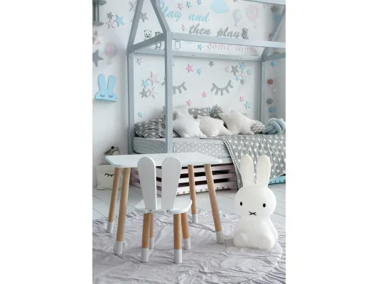 Dziecięcy zestaw stoliczek Króliś II z prostokątnym blatem z krzesełkiem z uszami królika.