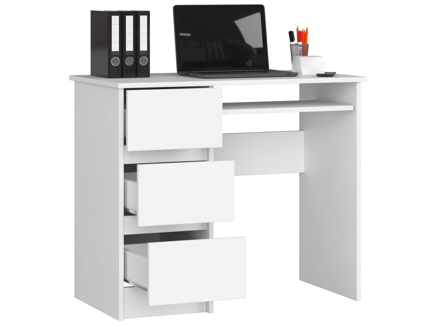 Mebel niewielkich rozmiarów idealnie sprawdzi się w małych pomieszczeniach lub w biurach, gdzie powinno się zmieścić więcej stanowisk komputerowych. Takie właśnie jest biurko komputerowe A-6 białe lewe, które posiada 90 cm długości, 77 cm wysokości i 50 cm długości. Jest nieskomplikowane w formie i bardzo funkcjonalne. Jego waga wynosi 30 kg. Biurko stworzone zostało z wysokojakościowej płyty laminowanej, co zapewnia dużą odporność na ścieranie. Z kolei obrzeże ABS, którym zostały okreloje widoczne krawędzie, chroni je przed uszkodzeniami.