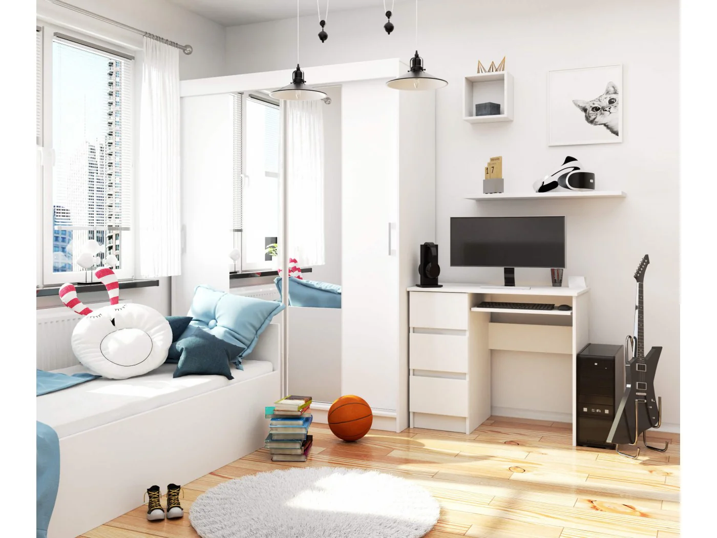 Biurko jest eleganckie i proste w formie, ma białą barwę. Świetnie sprawdzi się więc we wnętrzach o minimalistycznym wystroju. Jest idealne zarówno do biura, jak i użytku domowego. Mebel przeznaczony jest do samodzielnego montażu. Dzięki dołączonej do zamówienia instrukcji jest to łatwe do zrobienia. Ponieważ biurko zostało wykonane z materiału wysokiej jakości, cechuje się dużą trwałością i z pewnością zachowa swój idealny stan na długo. Mimo to, oferujemy naszym klientom gwarancję na okres 24 miesięcy. Biurko jest idealnym wyborem dla osób, które cenią sobie prostotę i funkcjonalność, a jednocześnie ważny jest dla nich komfort pracy. Biały kolor mebla sprawia, że prezentuje się ono nowocześnie i z klasą, idealnie dopasowując się do różnych aranżacji.