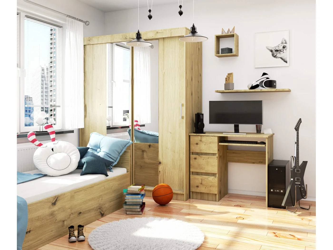 Biurko komputerowe A-6 dąb artisan świetnie sprawdzi się w pokoju dziecięcym i młodzieżowym, a także przeznaczonym do pracy. Jego niewielkie wymiary pozwolą również na zaaranżowanie przestrzeni do nauki lub pracy zdalnej w sypialni albo salonie. Biurko doskonale nadaje się także do zagospodarowania małego, kameralnego biura. Z uwagi na kolor dąb artisan mebel komponuje się zarówno z meblami nowoczesnymi, jak i bardziej klasycznymi.