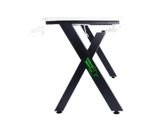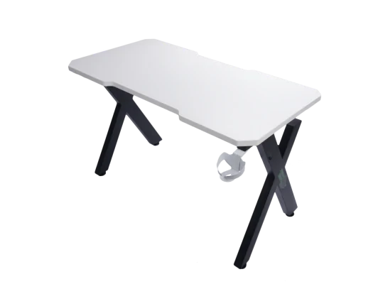Biały blat w połączeniu z czarnymi nogami w kształcie litery X składa