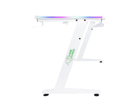 GameShark Zeo White to ergonomiczne biurko dla graczy. Wyróżnia się mnogością kolorów oświetlenia LED, antypoślizgowym blatem z karbonu, pokrytym niemal w całości podkładką pod myszkę i dynamicznym kształtem zarówno pulpitu, jak i nóg.