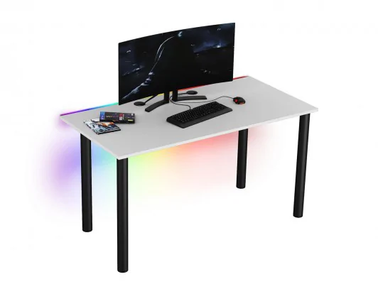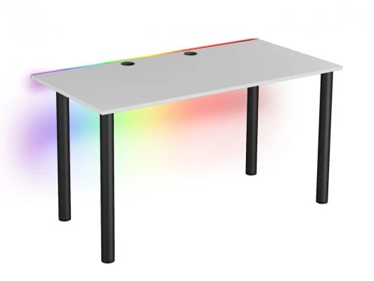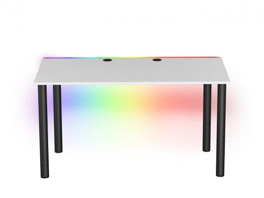 Biurko gamingowe na 4 okrągłych nogach z blatem prostym z listwą LED w kolorach RGB oraz 2 przelotkami na kable.