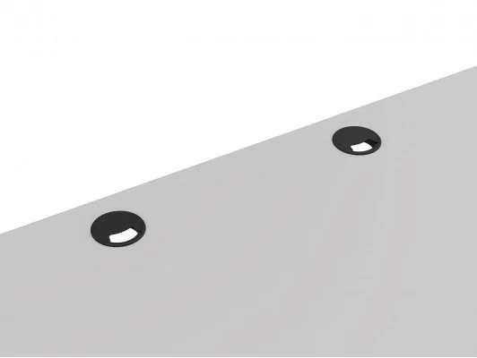 W blacie biurka umieściliśmy dwie dyskretne przelotki kablowe, w celu zmniejszenia widoczności przewodów znajdujących się na powierzchni blatu, służących np. zasilaniu monitora, klawiatury, myszy.