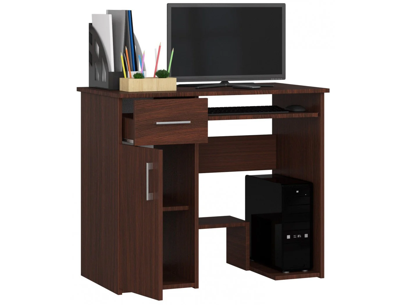 Piękne, małe biurko komputerowe JAY to propozycja skierowana do osób, które cenią sobie minimalizm. Proste, eleganckie biurko w kolorze wenge dobrze zaprezentuje się w każdym pomieszczeniu, w którym zostanie wykorzystane - gabinecie, pokoju młodzieżowym, jak również w biurze. Na mebel składa się blat, szuflada, zamykana szafka oraz wysuwana półka przeznaczona na klawiaturę. Całość została wykonana w solidny i staranny sposób z płyty laminowanej o grubości 16 milimetrów. Mebel wykazuje dużą odporność na zarysowania. Na uwagę zasługuje nie tylko jego wygląd, ale również cena, która sprawia, że produkt cieszy się ogromnym zainteresowaniem klientów odwiedzających nasz sklep internetowy. Mamy nadzieję, że sprosta również także oczekiwaniom. Jeżeli prezentowany przez nas produkt przypadł Państwu do gustu, zachęcamy do poznania również innych propozycji pochodzących z tej oferty. Dzięki nim uda się stworzyć funkcjonalną przestrzeń do pracy oraz nauki za niewielkie pieniądze. Zapraszamy serdecznie.