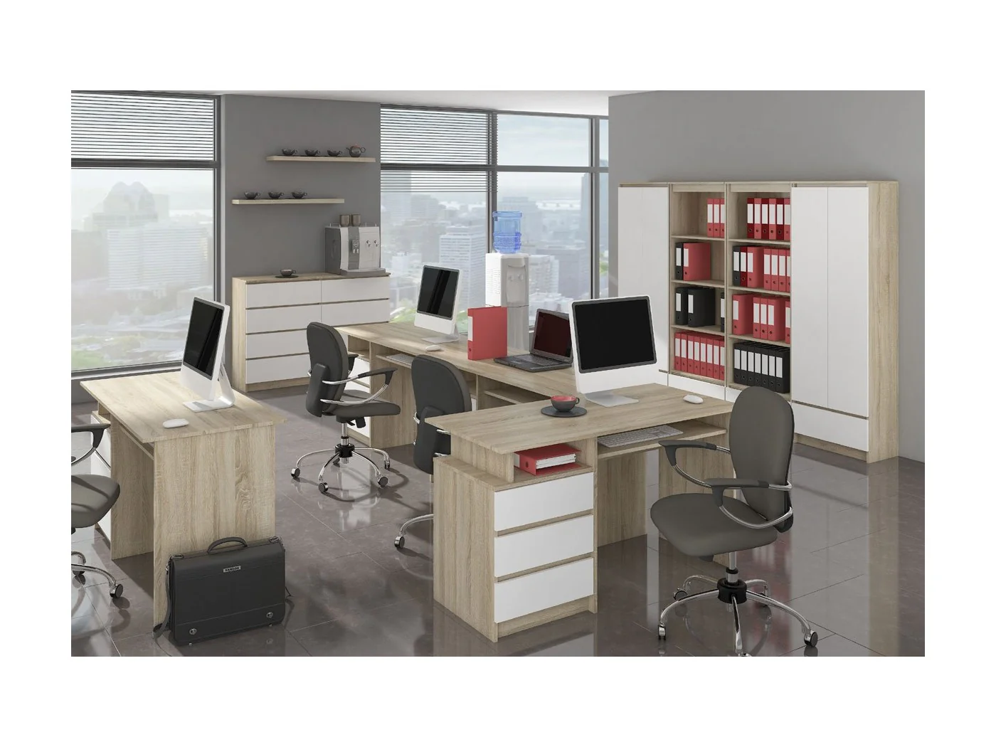 Delikatny kontrast pomiędzy barwami nie drażni oka, dzięki czemu użytkownik biurka będzie mógł, bez problemu skupić się na swojej pracy.
