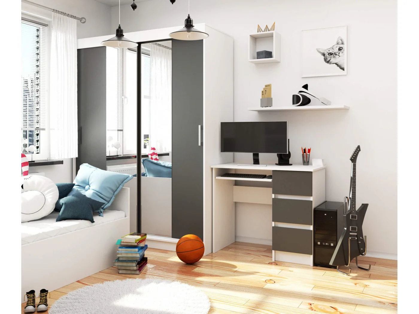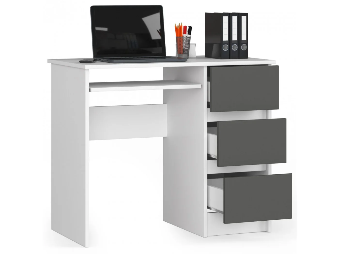 Biurko komputerowe A-6 90 cm prawe - białe-grafit szary - 3 szuflady