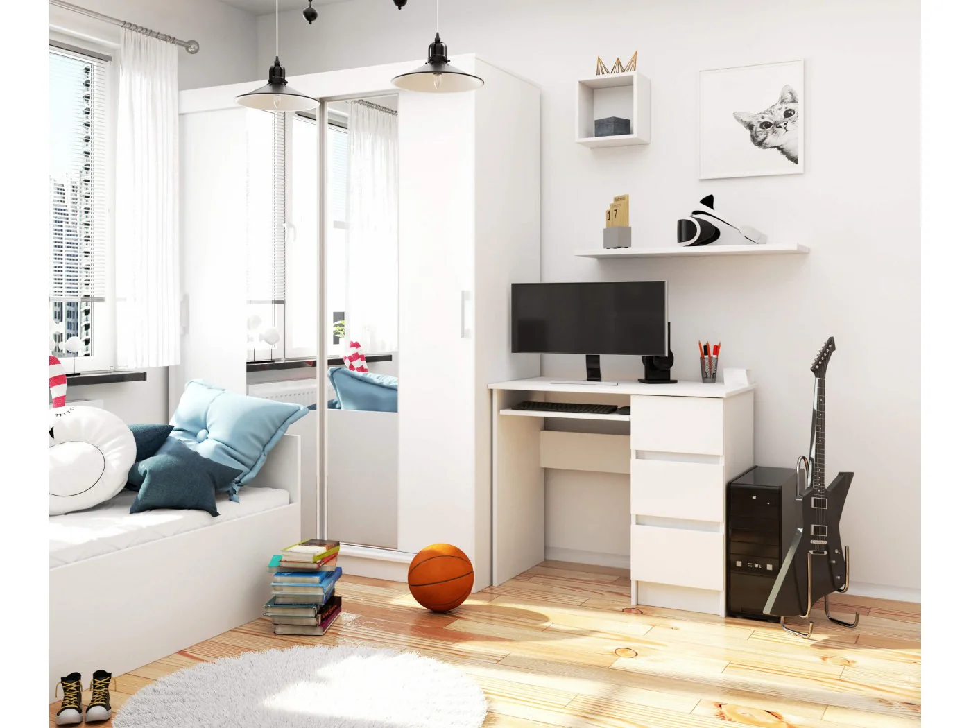 Białe biurko komputerowe jest idealną propozycją dla wszystkich osób ceniących sobie klasyczne formy w nowoczesnym wydaniu. Mebel został wykonany z odpornej na ścieranie płyty laminowanej, a jego krawędzie wzmocniono obrzeżem ABS. Biurko komputerowe 90cm doskonale sprawdza się w minimalistycznych wnętrzach, ale także w tych nieco bardziej ekstrawaganckich. Jego biała barwa nadaje każdemu pomieszczeniu lekkości. Nasz mebel jest często wybierany przez klientów indywidualnych, którzy ustawiają go w salonie, sypialni, pracowni albo gabinecie. Biurko komputerowe z wysuwaną półką jest również coraz częściej doceniane przez przedsiębiorców oraz właścicieli firm. Nasz produkt jest wykorzystywany w przestrzeniach biurowych. Na pojemnym blacie z łatwością można ustawić laptop, a w przestronnych szufladach pomieści się najważniejsza dokumentacja. Oferowane przez nas biurko łączy w sobie dwie bardzo ważne cechy. Zostało wykonane z materiałów o znakomitej jakości oraz posiada wysokie walory estetyczne.