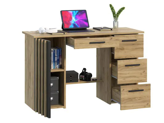 Biurko komputerowe loft z lamelami nowoczesne Montana B120 Dąb Craft Czarny