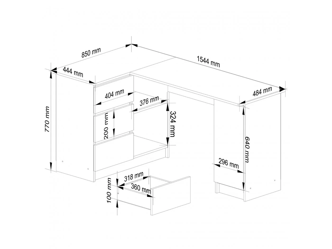 BIURKO NAROŻNE B20 155 cm LEWE PK BIAŁY POŁYSK