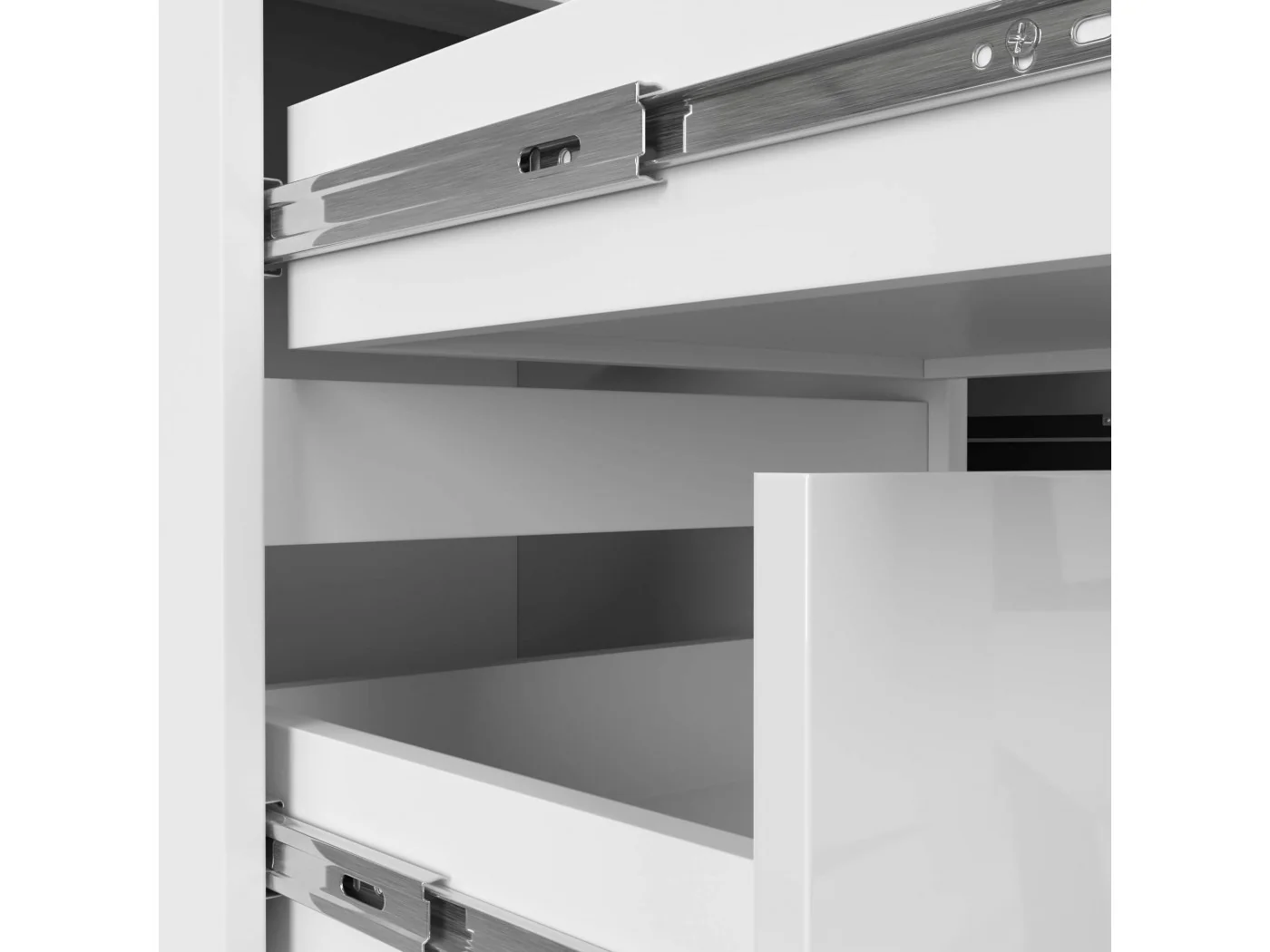 - Szuflady poruszają się na metalowych prowadnicach kulkowych