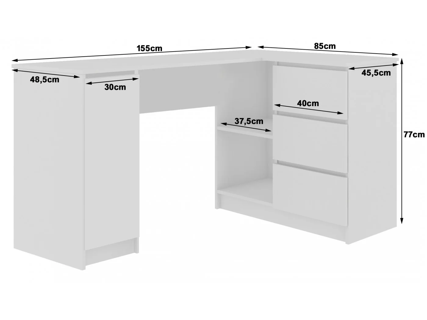 BIURKO NAROŻNE B20 155 cm PRAWE PK BIAŁY POŁYSK