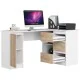 Znalezienie przestrzeni do pracy i nauki bywa czasem bardzo trudnym zadaniem. W takim przypadku ratunkiem okaże się komputerowe biurko narożne z szafką i szufladami. To niezwykle funkcjonalny mebel, który zmieści się w rogu pokoju. Biurko zostało wyposażone w znaczną powierzchnię do przechowywania. W pojemnych szufladach i szafce pomieszczą się wszystkie najważniejsze książki, dokumenty czy potrzebne akcesoria. Duże biurko komputerowe jest idealnym rozwiązaniem dla osób, które potrzebują w domu miejsca do pracy. Nasz mebel sprawdza się także w różnego rodzaju biurach. Nowoczesna forma i stylowe wykończenie powodują, że jest nie tylko praktyczny, ale posiada także wysokie walory estetyczne. Białe biurko komputerowe zostało wykonane z odpornej na ścieranie płyty laminowanej, a krawędzie wzmocniono dodatkowo obrzeżem ABS. Zapewnia to trwałość i wytrzymałość. Klasyczny biały matowy korpus połączyliśmy z czarnym połyskującym frontem, otrzymując w ten sposób niebanalny, a jednocześnie elegancki mebel.