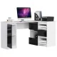 BIURKO NAROŻNE B16 124 cm PRAWE 3 SZUFLADY PK BIAŁE / CZARNY POŁYSK