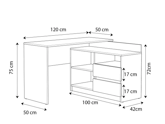 Wykorzystaj przestronność blatu o wym. 120x50cm. Sięgnij po przestrzeń 2 pojemnych szuflad do pomieszczenia wszelkich akcesoriów szkolnych, czy biurowych.