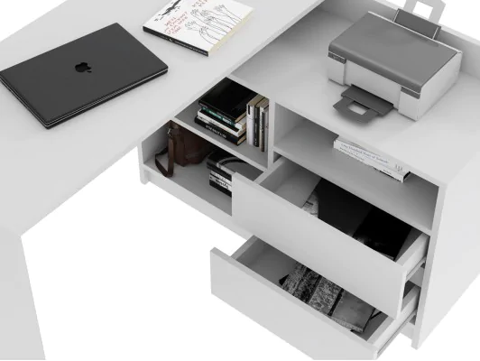 Biurko narożne białe komputerowe Delta szuflady Marka Martigo Plus