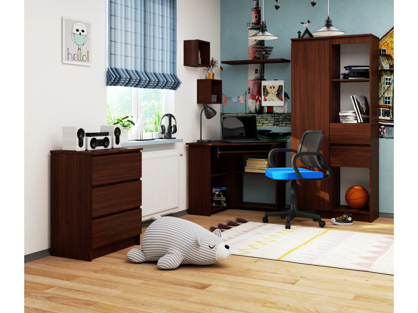 Zamówiłam biurko narożne do pokoju syna – model Norge. Przyszło dobrze zabezpieczone, montaż prosty, wszystko się zgadzało z opisem. Biurko solidne, wygląda bardzo estetycznie, a przede wszystkim funkcjonalne – sporo miejsca do przechowywania. Syn zadowolony, więc ja też ????