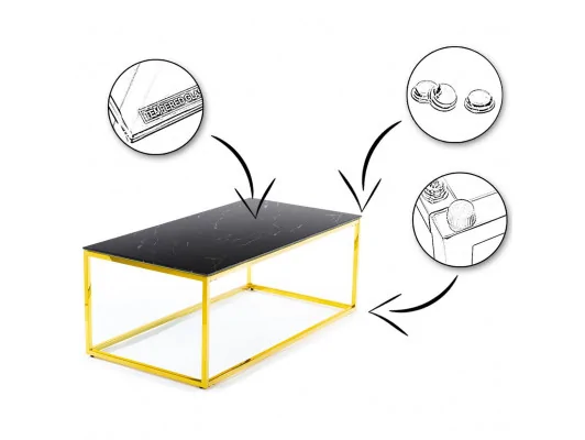 Stylowy stolik kawowy ława Rekta w kolorze złoto-czarnym.