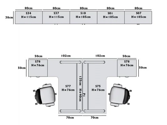 Biurka S75 oraz S77 o wymiarach (szer/wys/gł): 160/76/102 cm