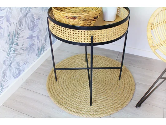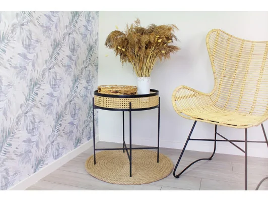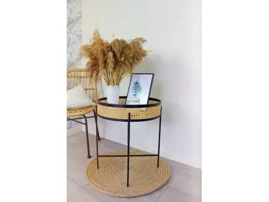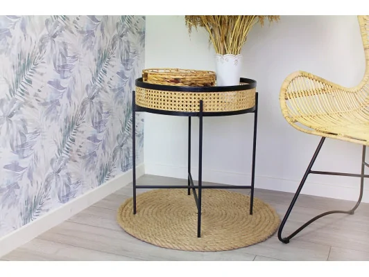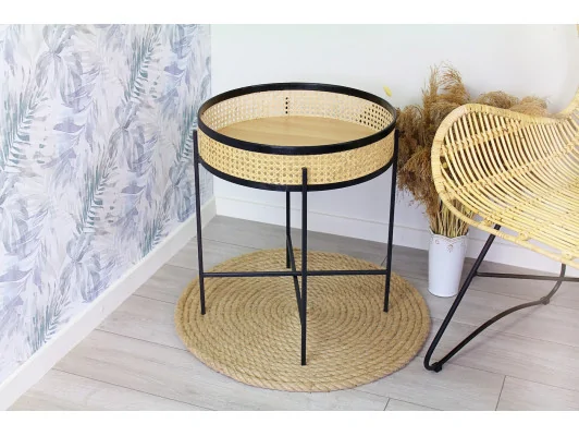 Stolik kawowy Artisia powstał z rattanu naturalnego, oraz stali malowanej proszkowo na kolor czarny.