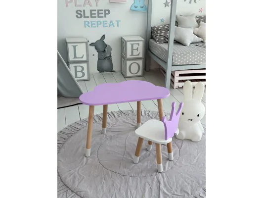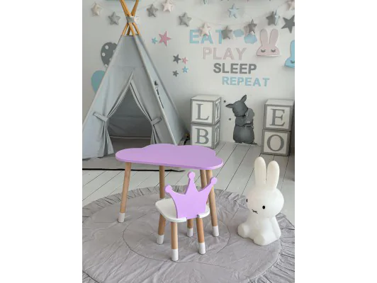 Zestaw dla dziecka Korona ze stoliczkiem chmurka i krzesełkiem z oparciem w kształcie korony w kolorze fioletowym