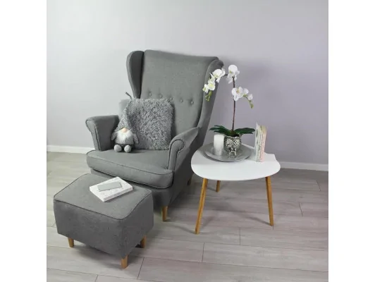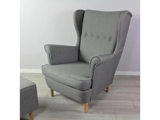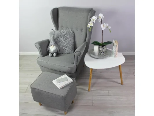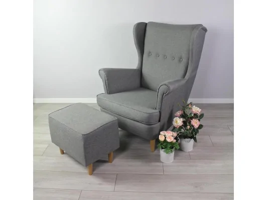 Fotel wypoczynkowy Teddy Szary uszak z podnóżkiem