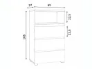 Prezentowany zestaw mebli dla dzieci i młodzieży Neo 02 jest naszą największą gotową kompozycją mebli pokojowych. Dobierając elementy do tego zestawu postawiliśmy na funkcjonalność i pojemność. Stąd w zestawie znajdziemy kilka typów regałów, komodę i biurko. Wygląd zestawu jest bardzo nowoczesny. W całej serii produktów oznaczonych symbolem Neo wyeliminowaliśmy uchwyty. Bryły osadziliśmy na eleganckich nóżkach z tworzywa sztucznego. Szczegółowy skład zestawu Neo 02 wygląda następująco: