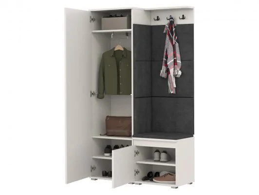 Nowoczesny funkcjonalny komplet do przedpokoju dostępny w 3 wersjach kolorystycznych oraz trzema kolorami siedzisz i paneli.