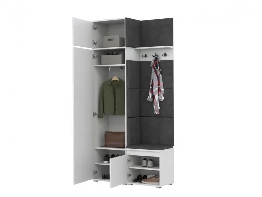 Nowoczesny funkcjonalny komplet do przedpokoju dostępny w 3 wersjach kolorystycznych oraz trzema kolorami siedzisz i paneli.