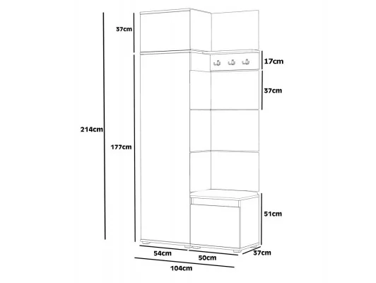 Garderoba przedpokój szafa panele wieszak NEVADA 104 Z NADSTAWKĄ KASZMIR