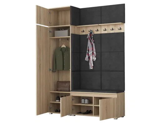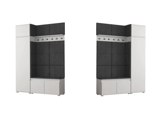 Nowoczesny funkcjonalny komplet do przedpokoju dostępny w 3 wersjach kolorystycznych oraz trzema kolorami siedzisz i paneli.