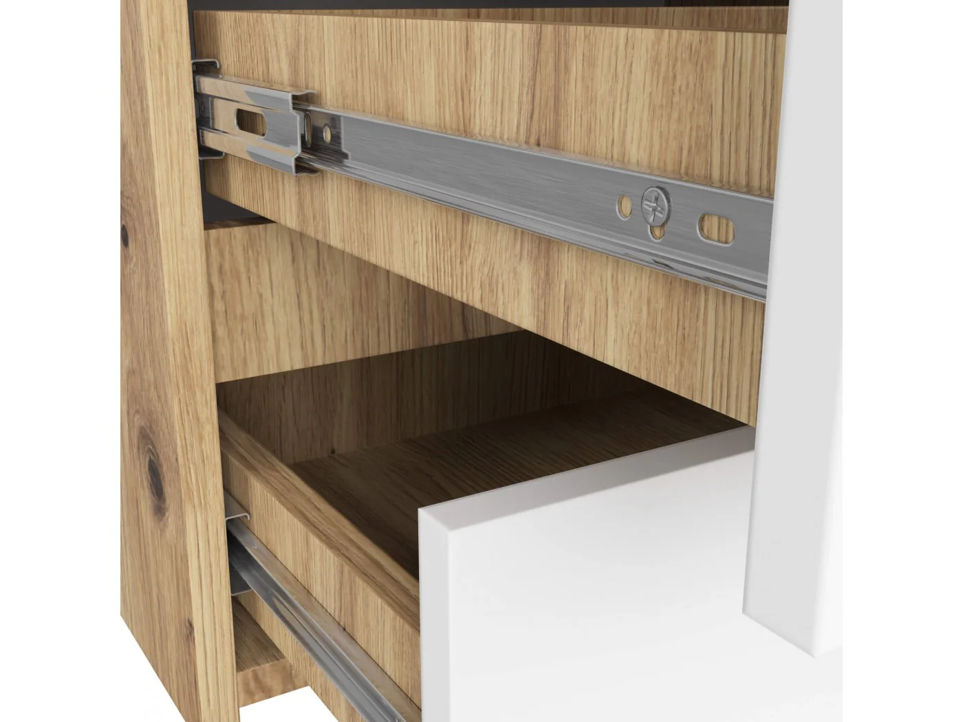 - Szuflady poruszają się na metalowych prowadnicach kulkowych