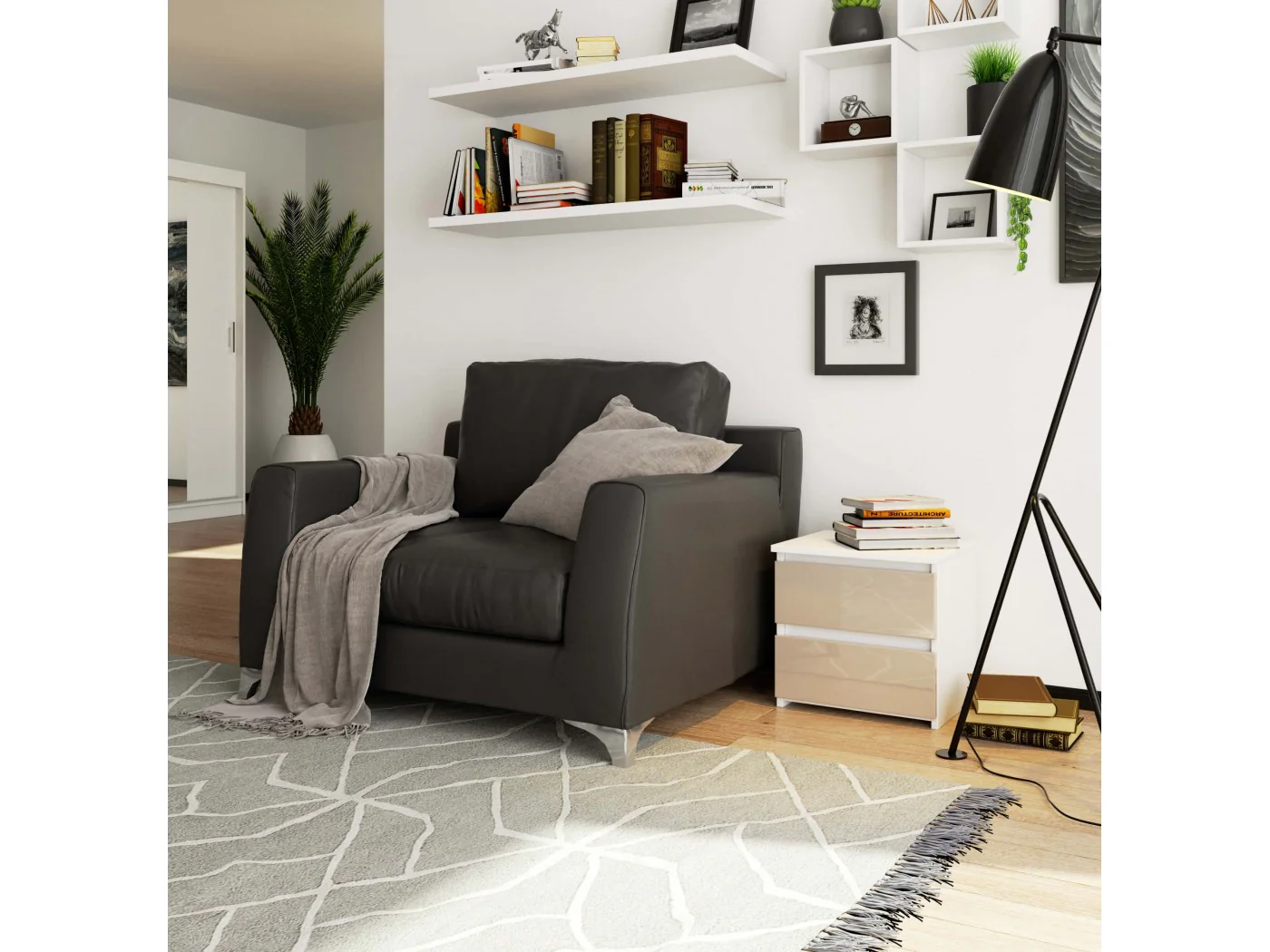 Szafka nocna, model CL2 wykonana jest z płyty laminowanej, odpornej na ścieranie. Płyta MDF z powłoką akrylową nadaje jej trwałości i eleganckiego wyglądu. Blat, boki oraz fronty oklejono obrzeżem ABS, które chroni mebel przed uszkodzeniami mechanicznymi. Fronty szuflad wykonano w kolorze cappuccino połysk, zaś blat i boki w kolorze białym. Takie połączenie barw jest naturalne, ciepłe i przyjazne w odbiorze. Mebel pięknie się będzie prezentował w sypialni, salonie, pokoju młodzieżowym czy domowym gabinecie.