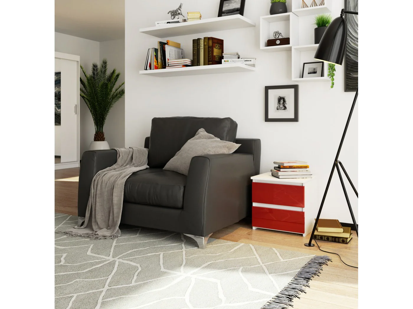 W ofercie naszego sklepu znajdziesz modą i jakościową szafkę nocną, której design i jakość powali Cię na kolana. Szafa wykonana z płyty laminowanej, która jest odporna na ścieranie. Dzięki temu będziesz mieć gwarancje, że ten piękny mebel będzie służył Ci przez lata, nie tracąc na walorach estetycznych. Warto dodać, że także fronty zostały wykonane z płyty czerwony połysk. Ponadto szuflady w tej szafce poruszają się na metalowych prowadnicach rolkowych. Aby dodać jeszcze więcej ochrony nadstawce na szafę to jej krawędzie i fronty zostały obklejone obrzeżem ABS, które na celu ma zapewnić meblowi wysoką ochronę przez wszelkimi uszkodzeniami mechanicznymi.
