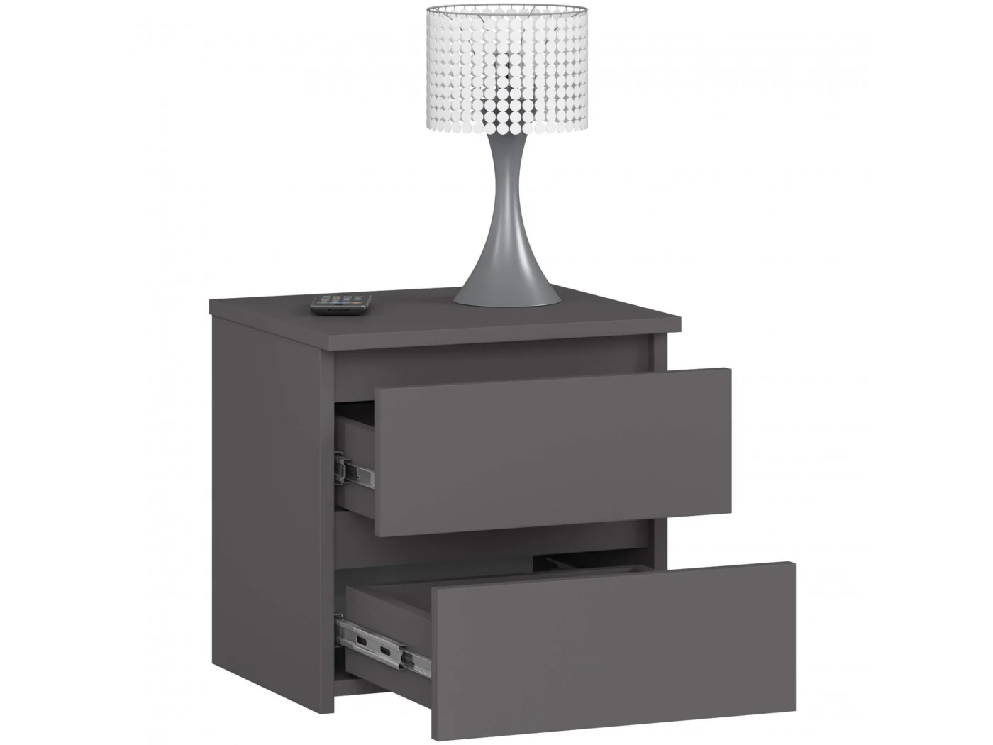 Szafki nocne to popularny tym mebla, który stawia się przy łóżku. Na jego blacie można ustawić lampkę, zaś w szufladach - ważne przedmioty, służące poprawie jakości odpoczynku i snu. W naszej ofercie dostępna jest szafka nocna CL2 40 cm w kolorze grafit szary. Prezentuje się ona elegancko i nowocześnie, a zarazem jest funkcjonalna. Świetnie sprawdzi się w każdej sypialni oraz pokoju młodzieżowym.