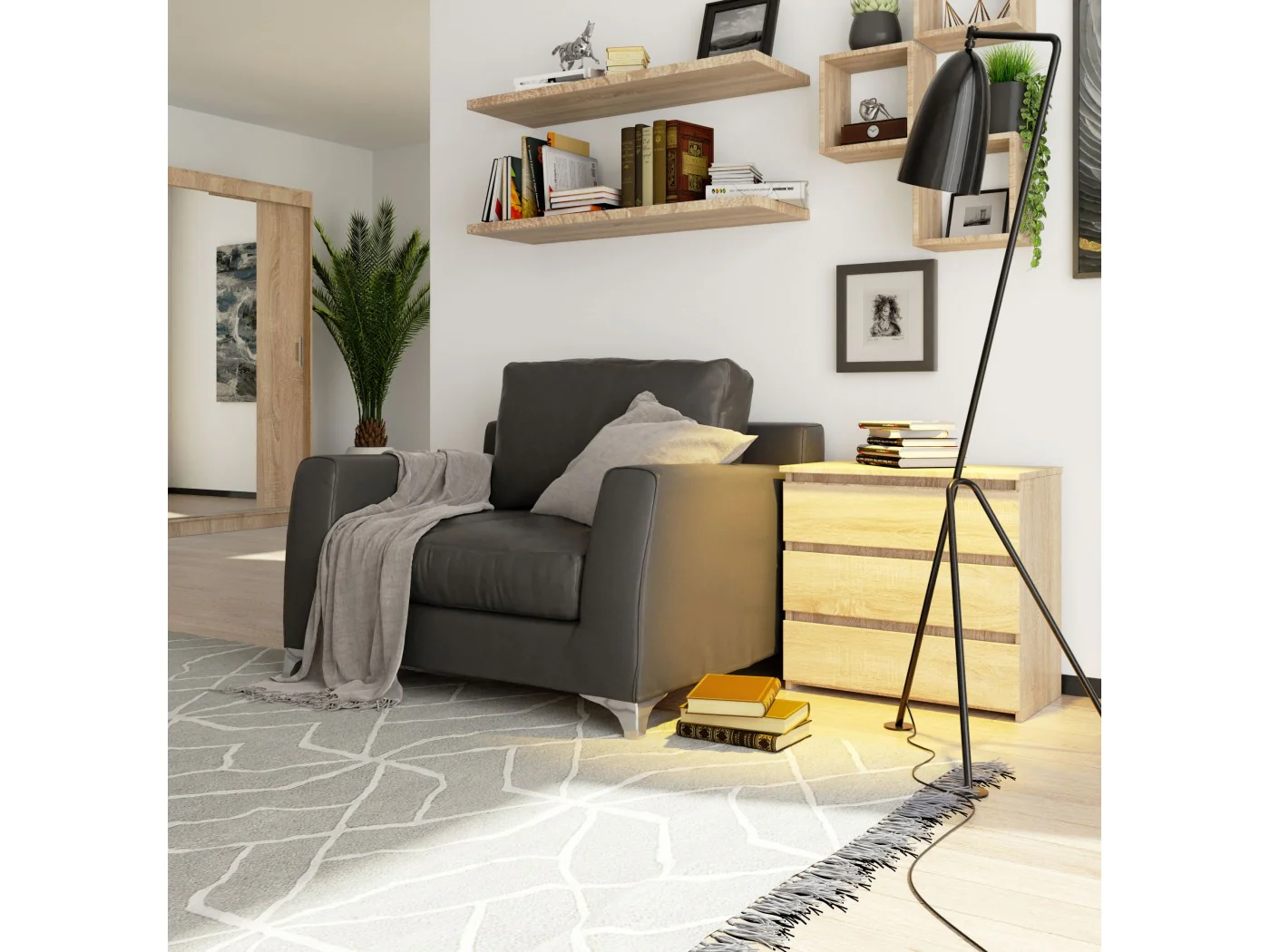 Elegancka, funkcjonalna i nowoczesna - taka właśnie jest wyposażona w trzy szuflady komoda CL3 pochodząca z asortymentu internetowego sklepu meblowego Akord. To mebel w gustownym i modnym kolorze dąb sonoma, który znakomicie prezentować się będzie nie tylko w sypialni czy salonie, ale również w przedpokoju oraz pomieszczeniach biurowych.