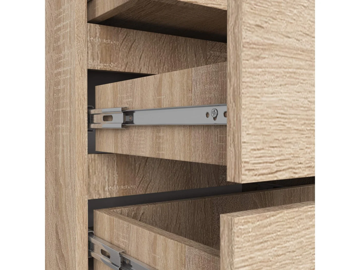 Zarówno stabilny korpus, jak i pojemne szuflady mebla wykonane zostały z wysokogatunkowej płyty laminowanej firmy Krosnospan. Jest to materiał odporny na ścieranie, którego trwałość dodatkowo podnoszą krawędzie oklejone zaawansowanym technologicznie obrzeżem ABS. Dzięki temu połączeniu nasza komoda to mebel na lata - niestraszne mu codzienne użytkowanie! Praktyczne szuflady komody CL3 poruszają się po wysokiej jakości metalowych prowadnicach kulkowych zapewniających im płynną i cichą pracę każdego dnia.