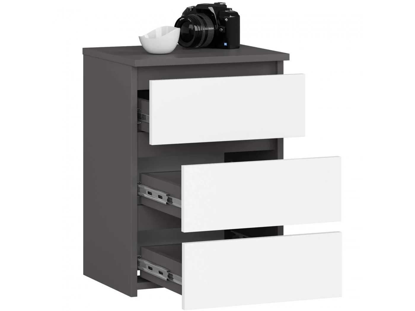 Szafki nocne to popularny typ mebla, który umieszcza się przy łóżku. Na jego blacie najczęściej znajduje się lampka, zaś wewnątrz przedmioty ułatwiające odpoczynek oraz sen. Osoby, które szukają eleganckiej komody, powinny zwrócić uwagę na szafkę nocną CL3 40 cm w kolorze grafit szary z białymi frontami. Będzie się ona pięknie prezentować w każdej sypialni. Postawić można ją również w pokoju dziecięcym.