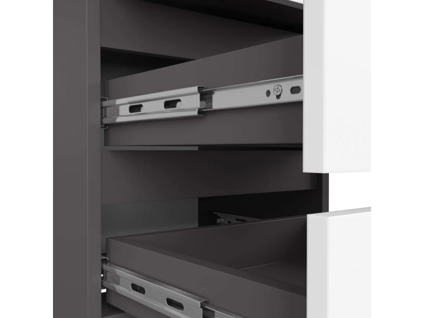 - elegancki wygląd - komoda jest prosta w formie, cechuje się stylowym kolorem grafit szary i frontem białym,
