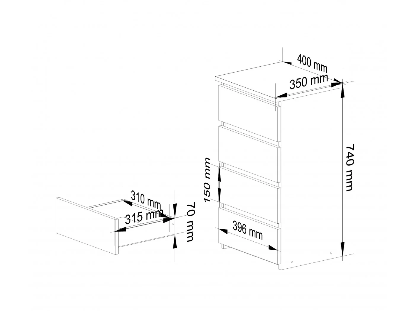 - pojemność - jedna szuflada do dowolnego zagospodarowania,