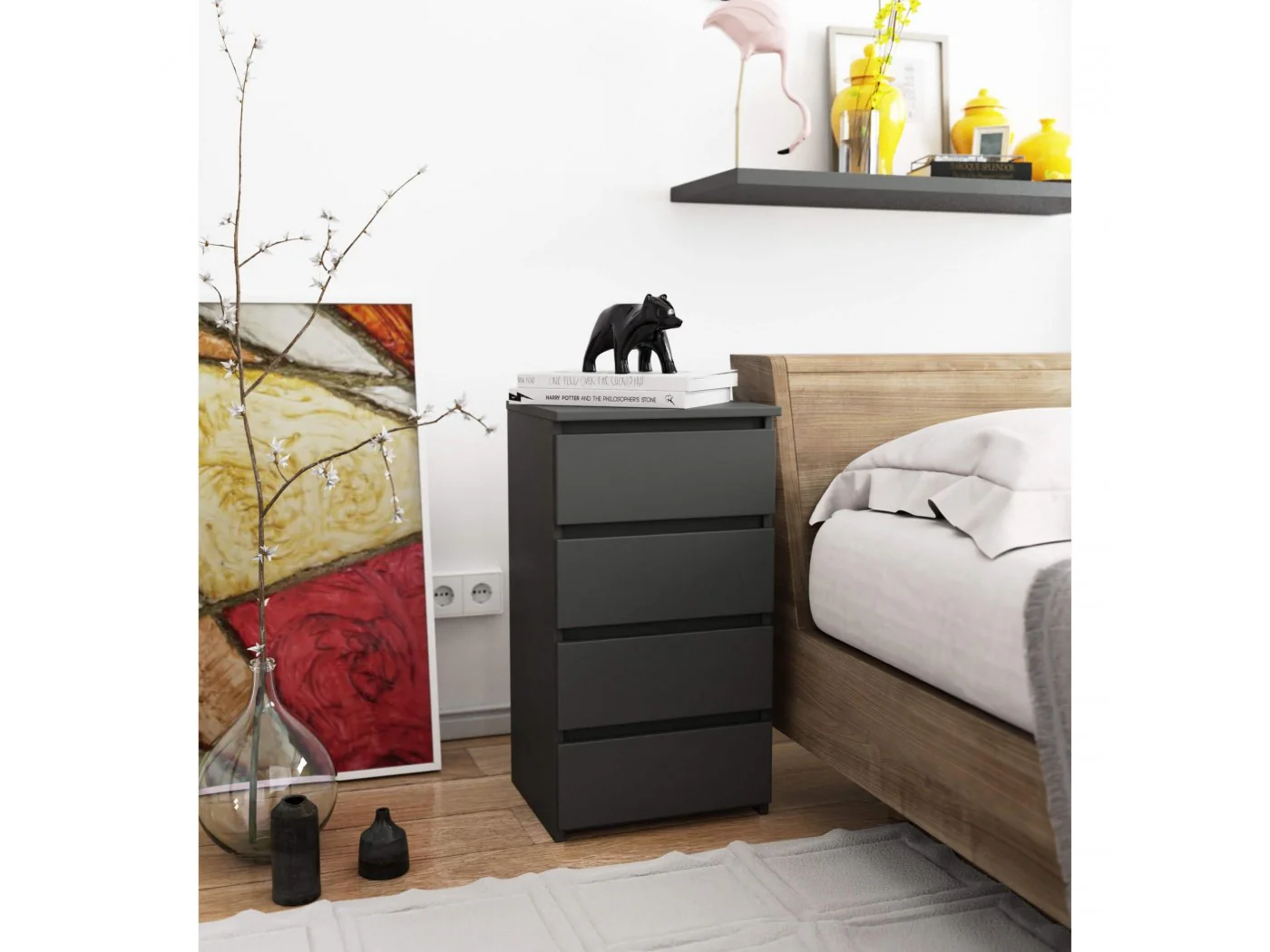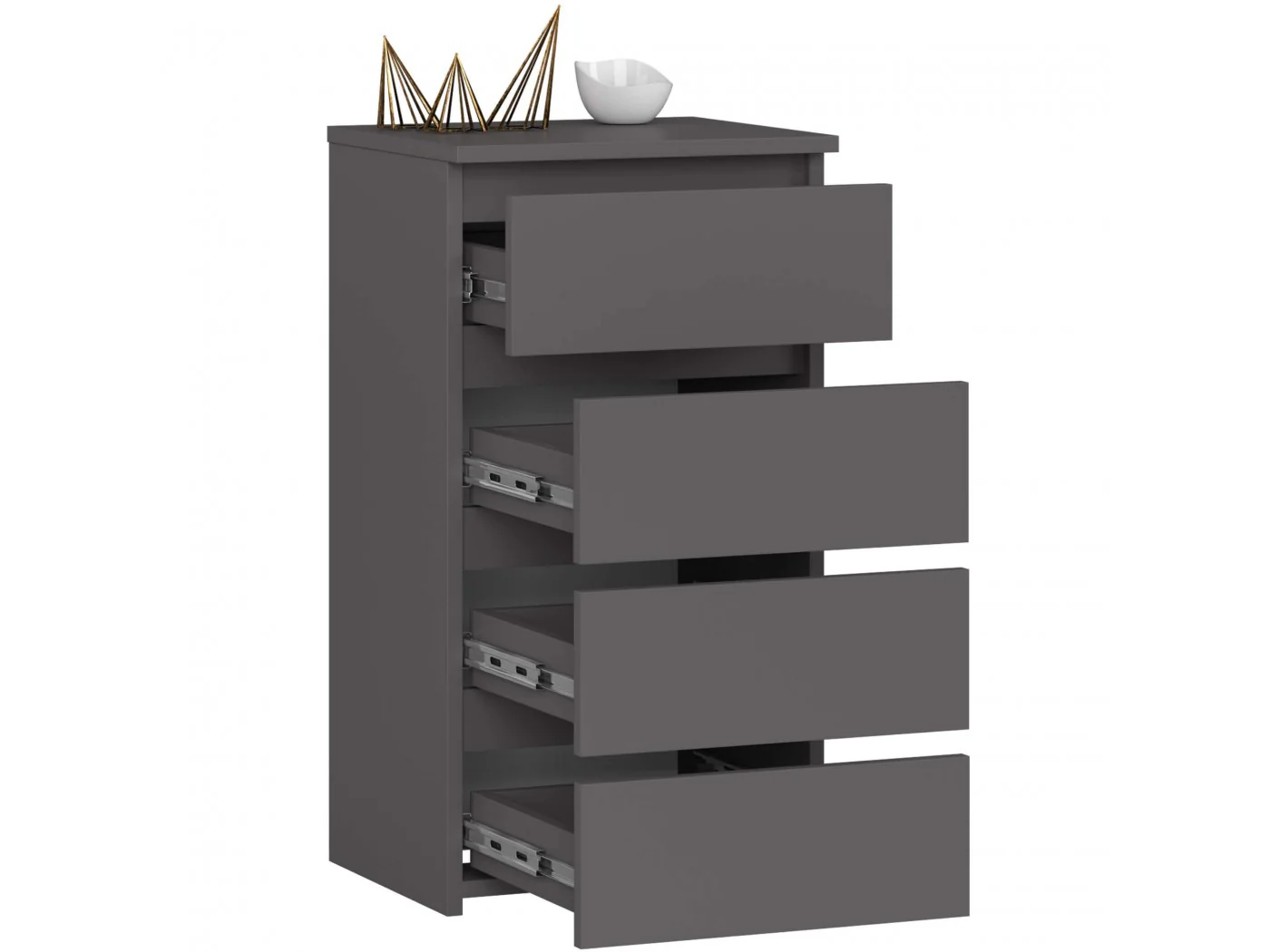 Komody to popularny typ mebla, który umieszcza się przy łóżku. Na jego blacie najczęściej znajduje się lampka, zaś wewnątrz przedmioty ułatwiające odpoczynek oraz sen. Osoby, które szukają eleganckiej komody, powinny zwrócić uwagę na komodę CL4 40 cm w kolorze grafit szary. Będzie się ona pięknie prezentować w każdej sypialni. Postawić można ją również w pokoju dziecięcym.