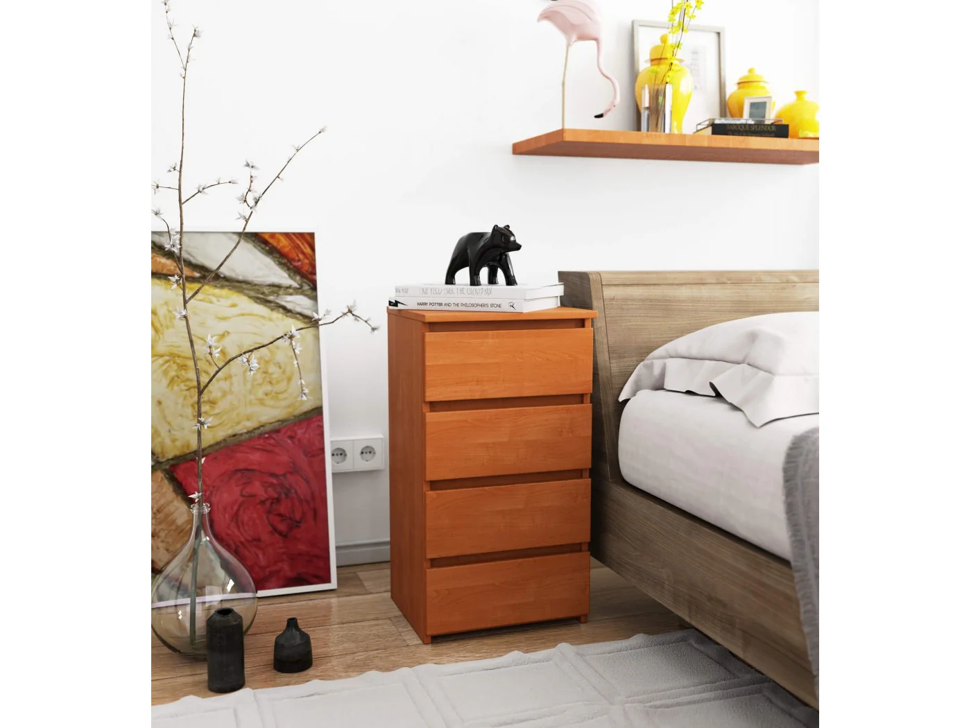 Komody to popularny typ mebla, który umieszcza się przy łóżku. Na jego blacie najczęściej znajduje się lampka, zaś wewnątrz przedmioty ułatwiające odpoczynek oraz sen. Osoby, które szukają eleganckiej komody, powinny zwrócić uwagę na komodę CL4 40 cm w kolorze olcha. Będzie się ona pięknie prezentować w każdej sypialni. Postawić można ją również w pokoju dziecięcym.