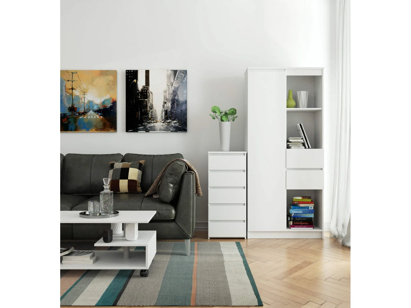 - elegancki wygląd - komoda jest prosta w formie, cechuje się stylowym kolorem białym,