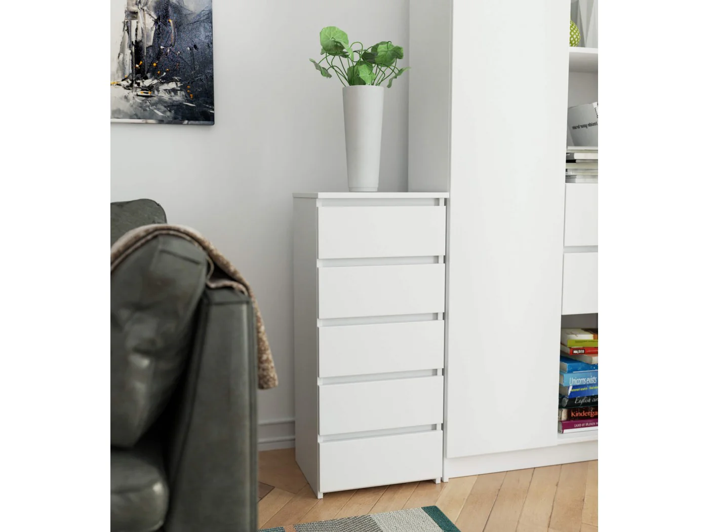 Komoda to popularny typ mebla, który umieszcza się przy łóżku. Na jego blacie najczęściej znajduje się lampka, zaś wewnątrz przedmioty ułatwiające odpoczynek oraz sen. Osoby, które szukają eleganckiej komody, powinny zwrócić uwagę na komoda CL5 40 cm w kolorze białym. Będzie się ona pięknie prezentować w każdej sypialni. Postawić można ją również w pokoju dziecięcym.