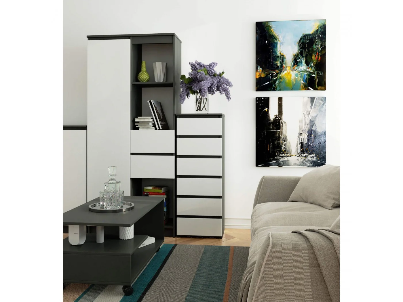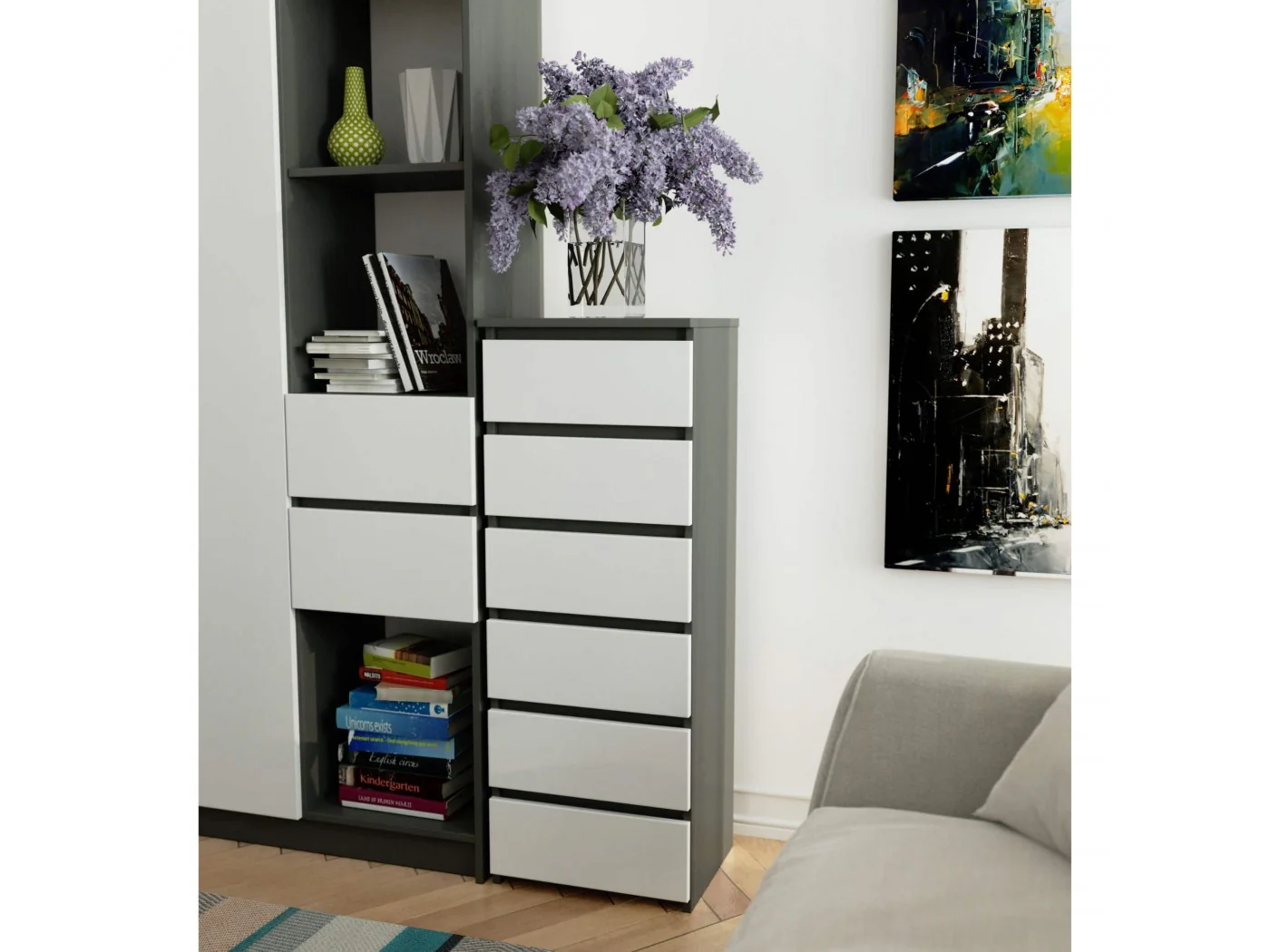 KOMODA CL6 GRAFIT SZARY / BIAŁA