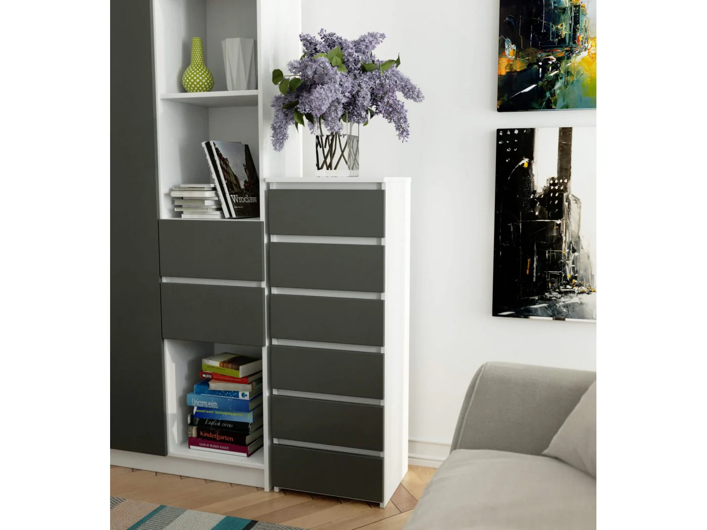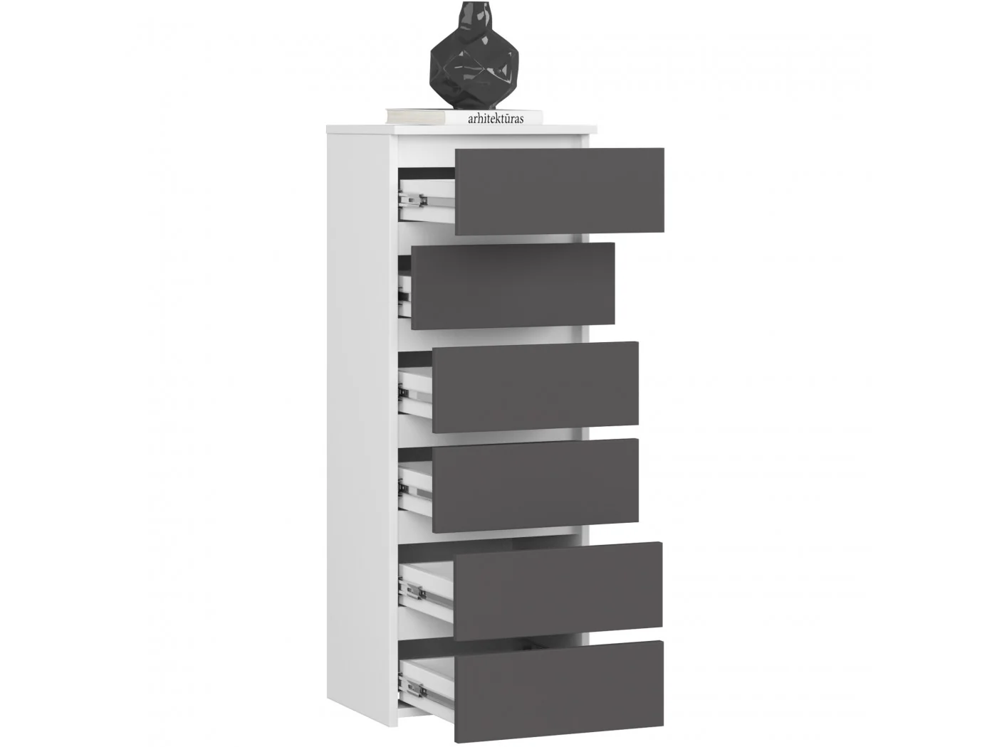 Komody to popularny typ mebla, który umieszcza się przy łóżku. Na jego blacie najczęściej znajduje się lampka, zaś wewnątrz przedmioty ułatwiające odpoczynek oraz sen. Osoby, które szukają eleganckiej komody, powinny zwrócić uwagę na komodę CL6 40 cm w kolorze białym z frontami grafit szary. Będzie się ona pięknie prezentować w każdej sypialni. Postawić można ją również w pokoju dziecięcym.